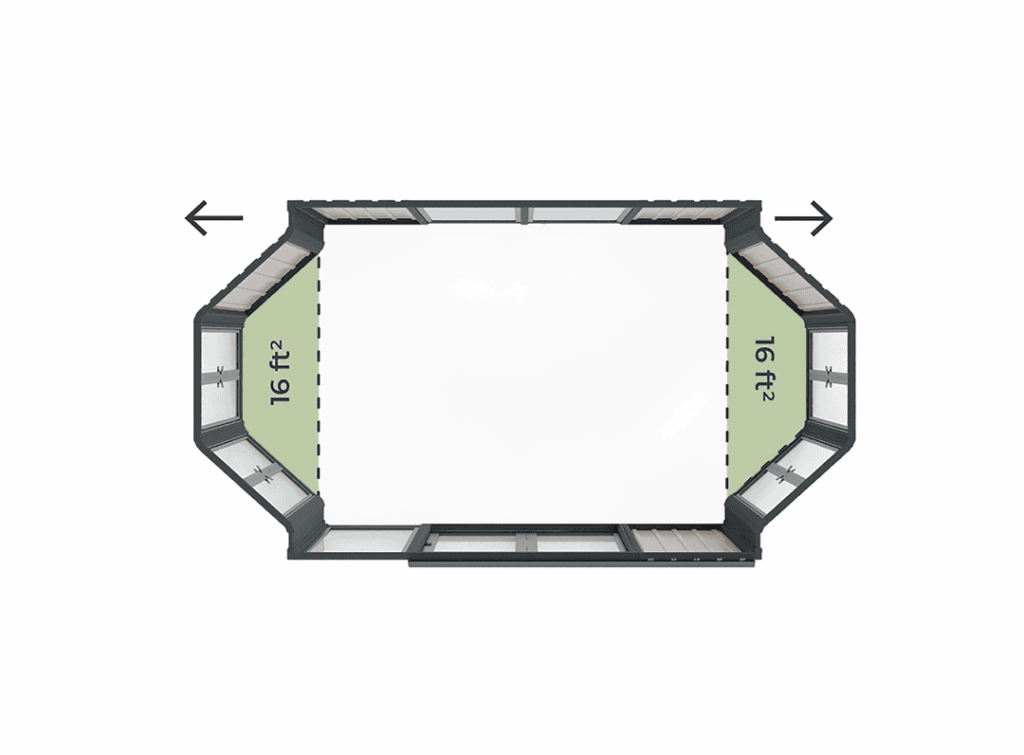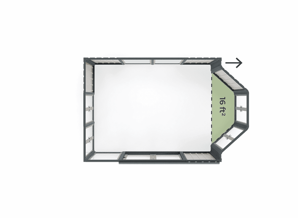 La section en baie de 11 pi ajoute de manière transparente 16 pi² supplémentaires à votre espace intérieur, offrant à la fois fonctionnalité et style. *Le type de panneaux peut changer selon le modèle.