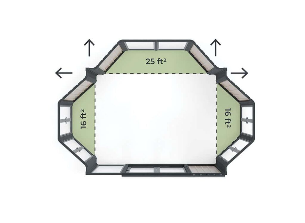 Vous pouvez personnaliser votre Cypress en ajoutant des sections en baie sur un maximum de trois côtés. *Le type de panneaux peut changer selon le modèle.
