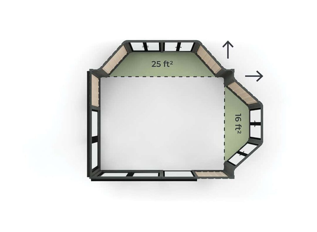 La section en baie de 14 pi ajoute de manière transparente 25 pi² supplémentaires à votre espace intérieur, offrant à la fois fonctionnalité et style. *Le type de panneaux peut changer selon le modèle.