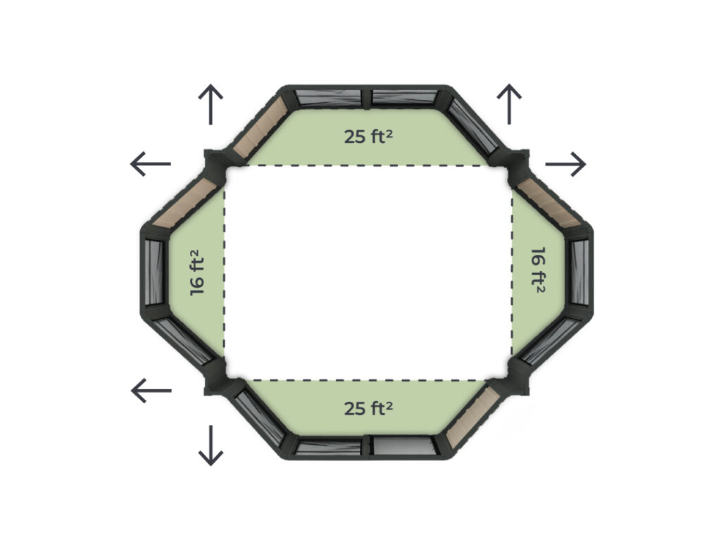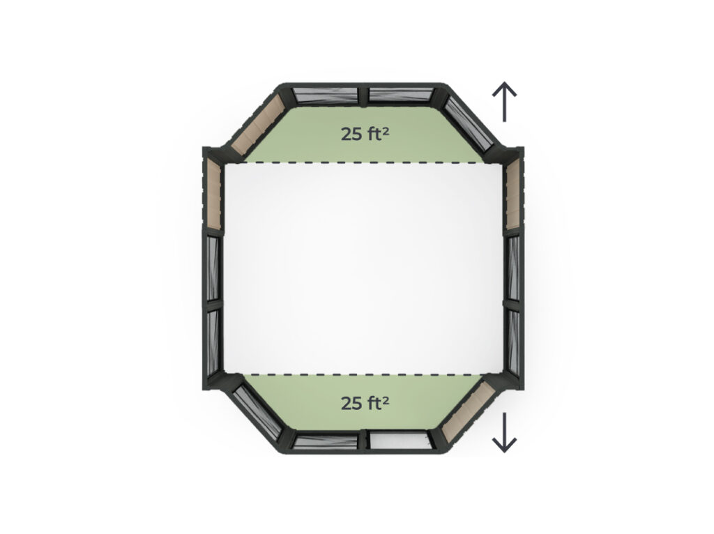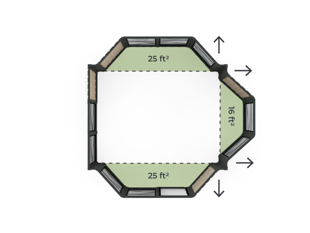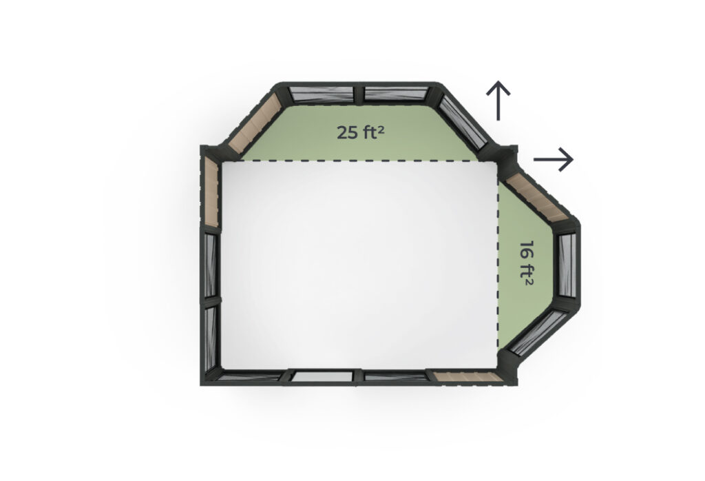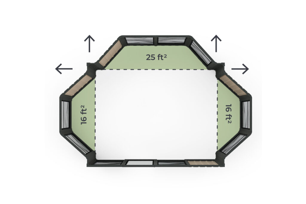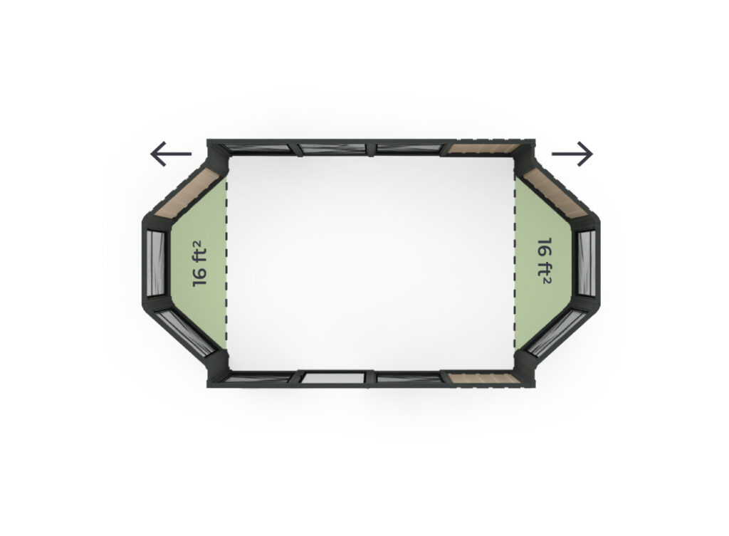 The 14′ bay kit seamlessly adds an extra 25ft² to your interior space, providing both functionality and style. *Panels type may change depending on the Model.